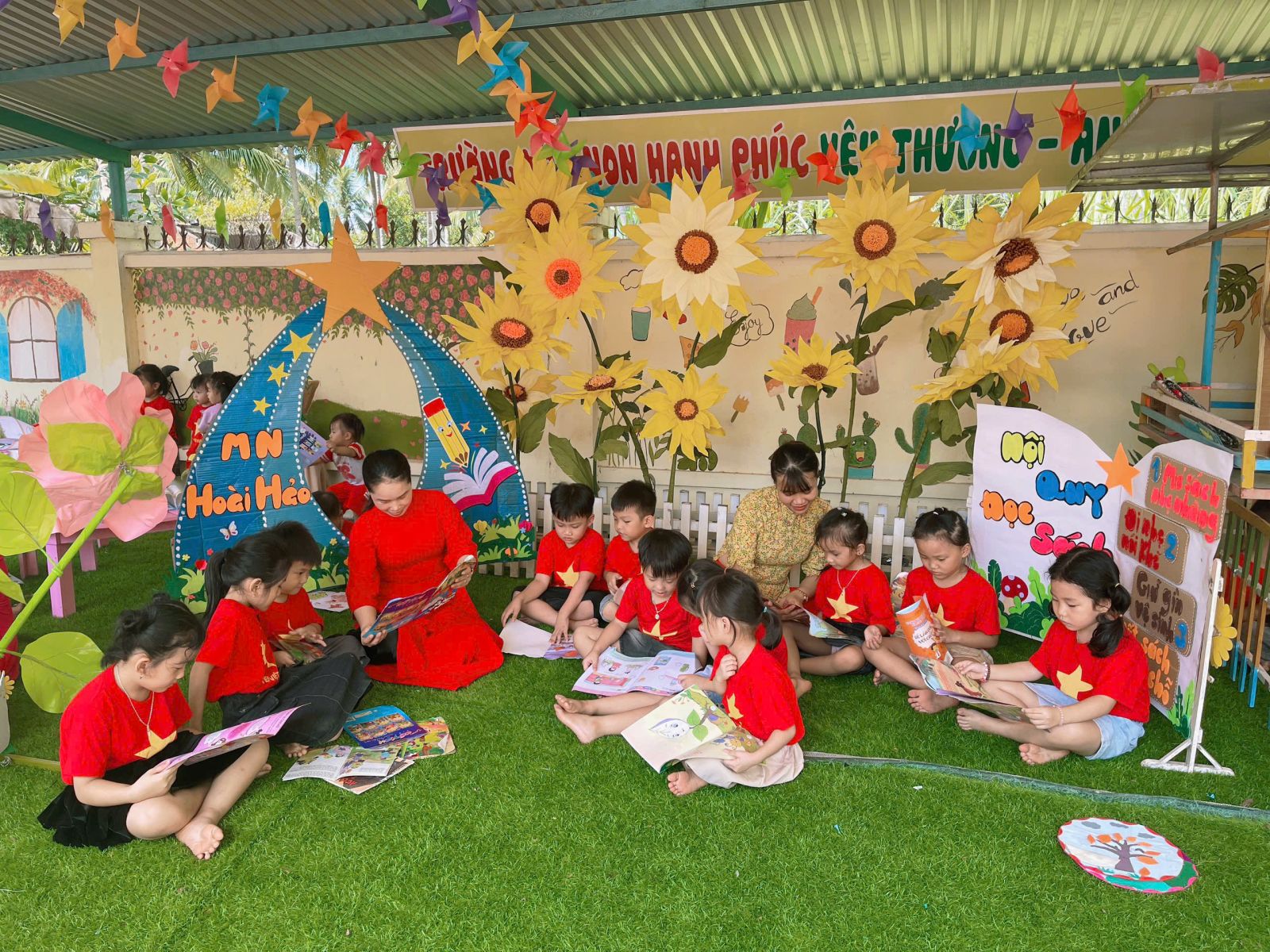 Các bé trải nghiệm không gian đọc sách ngoài trời