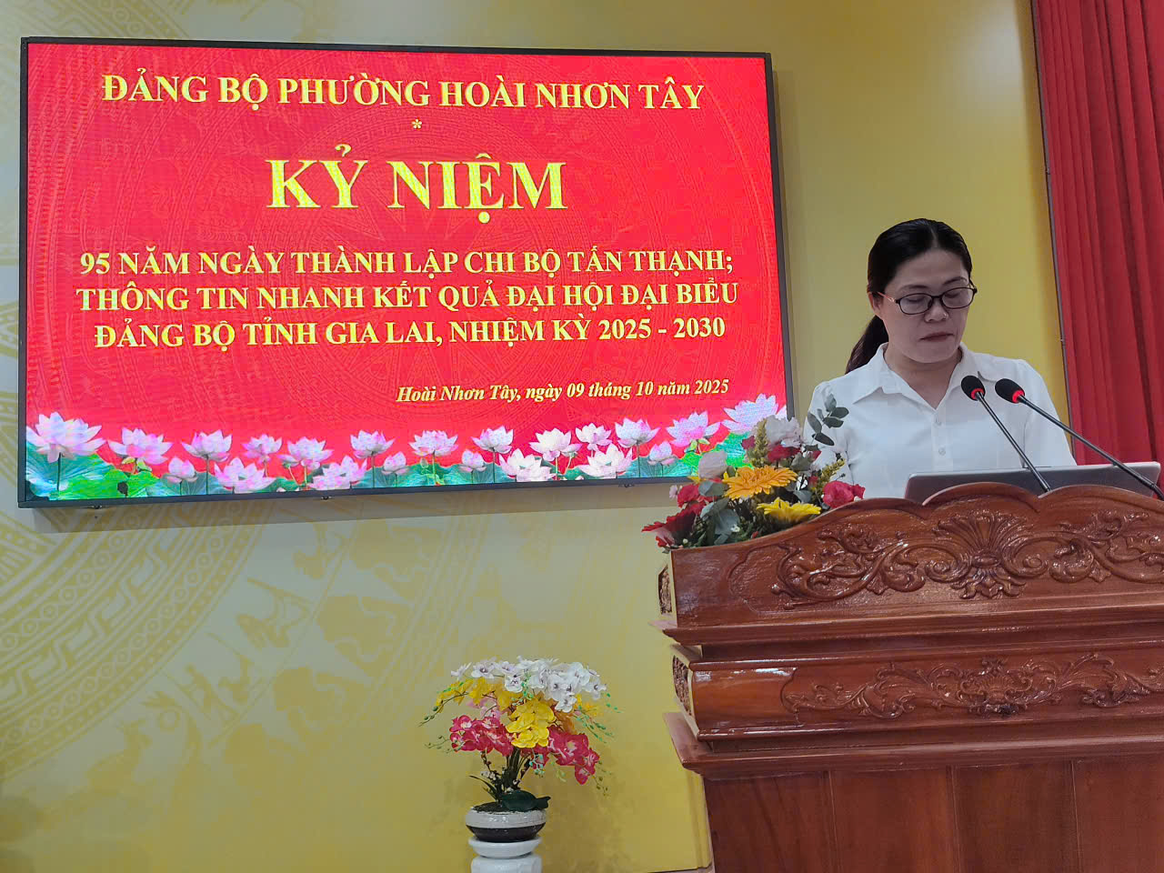 Tại buổi lễ, các đại biểu đã cùng nhau ôn lại truyền thống vẻ vang 95 năm xây dựng và trưởng thành của Chi bộ Tấn Thạnh – một trong những chi bộ Đảng đầu tiên trên địa bàn phường Hoài Nhơn Tây.Từ khi ra đời trong phong trào đấu tranh cách mạng chống thực dân phong kiến, Chi bộ Tấn Thạnh đã trải qua nhiều giai đoạn lịch sử đầy khó khăn, gian khổ, nhưng luôn kiên trung với lý tưởng của Đảng, gắn bó mật thiết với nhân dân, lãnh đạo thực hiện thắng lợi các phong trào ở cơ sở.