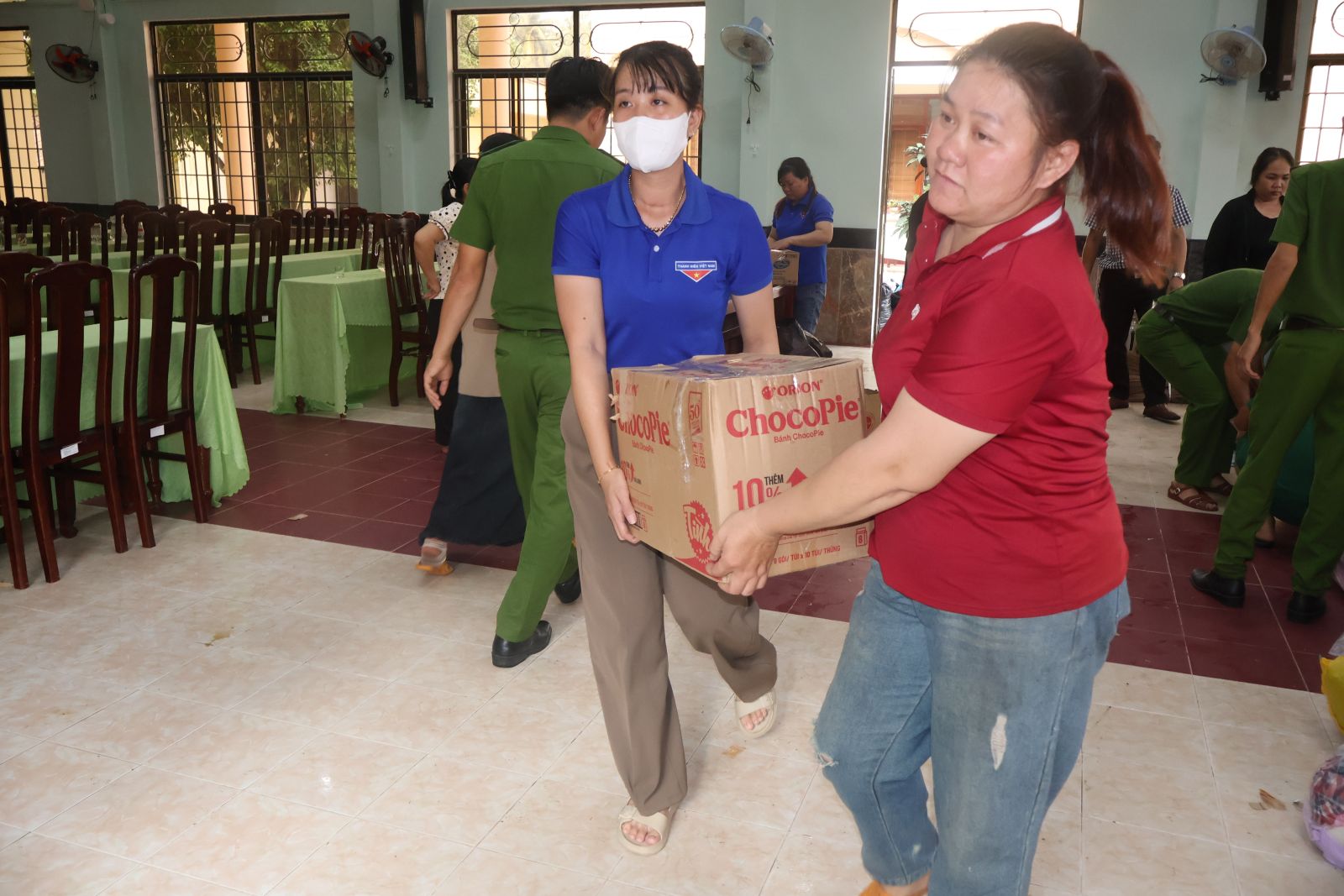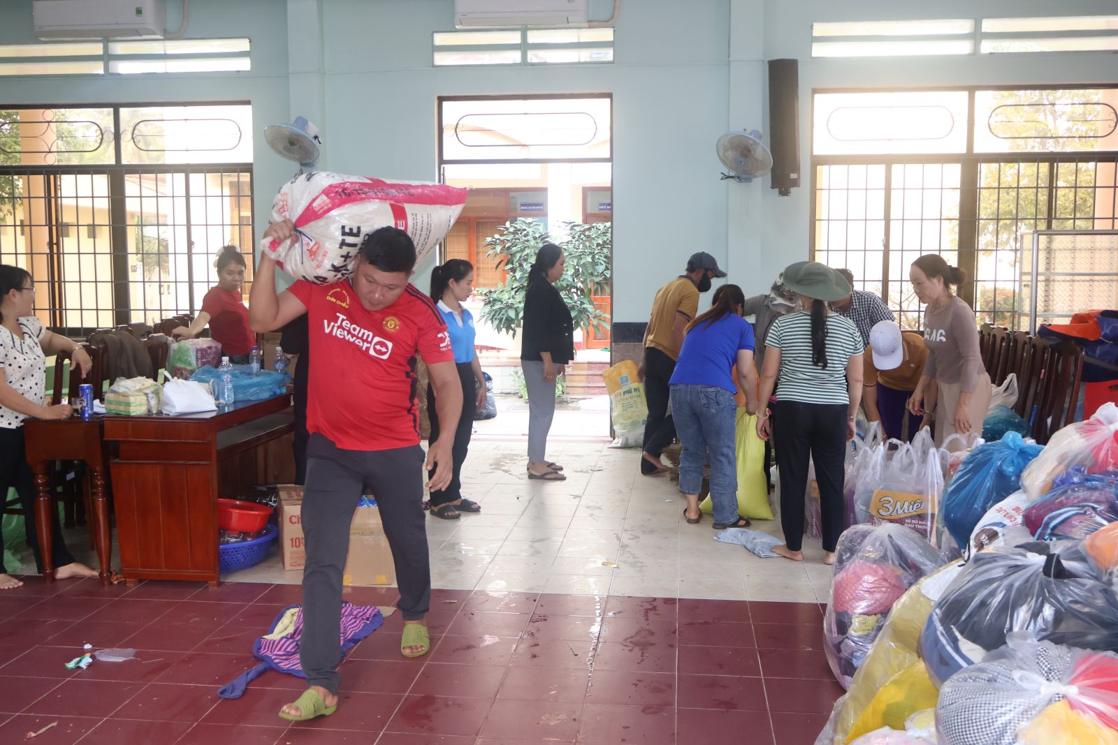 Không khí làm việc rất khẩn trương đế sớm đưa nhu yếu phẩm về đến tay bà con vùng lũ