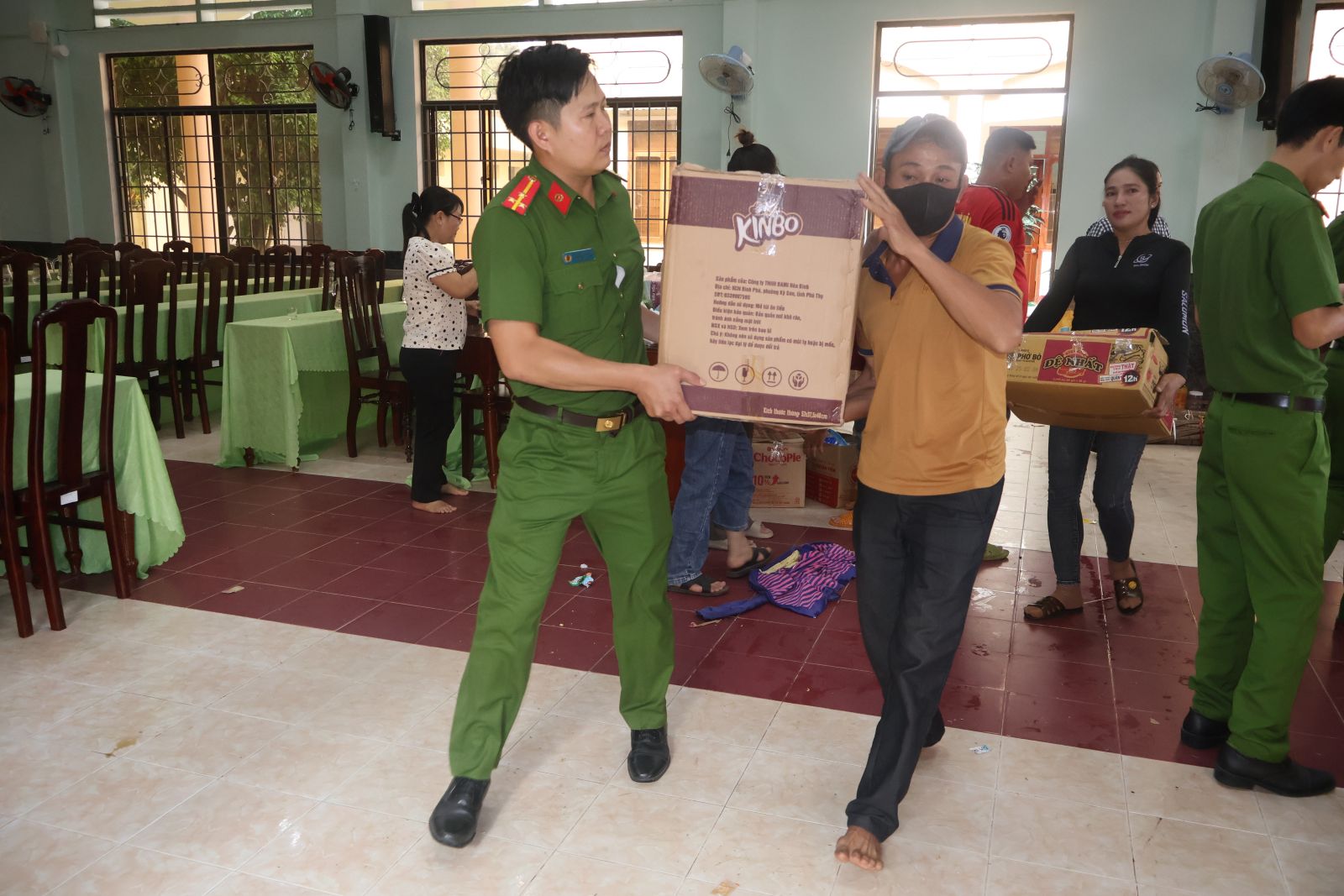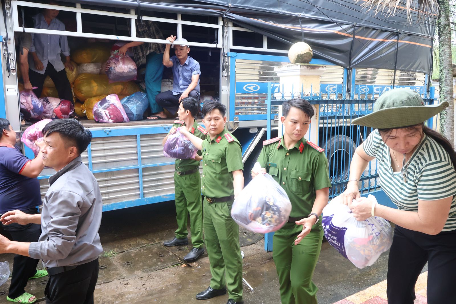 Cán bộ chiến sĩ CA tham gia vận chuyển hàng cứu trợ