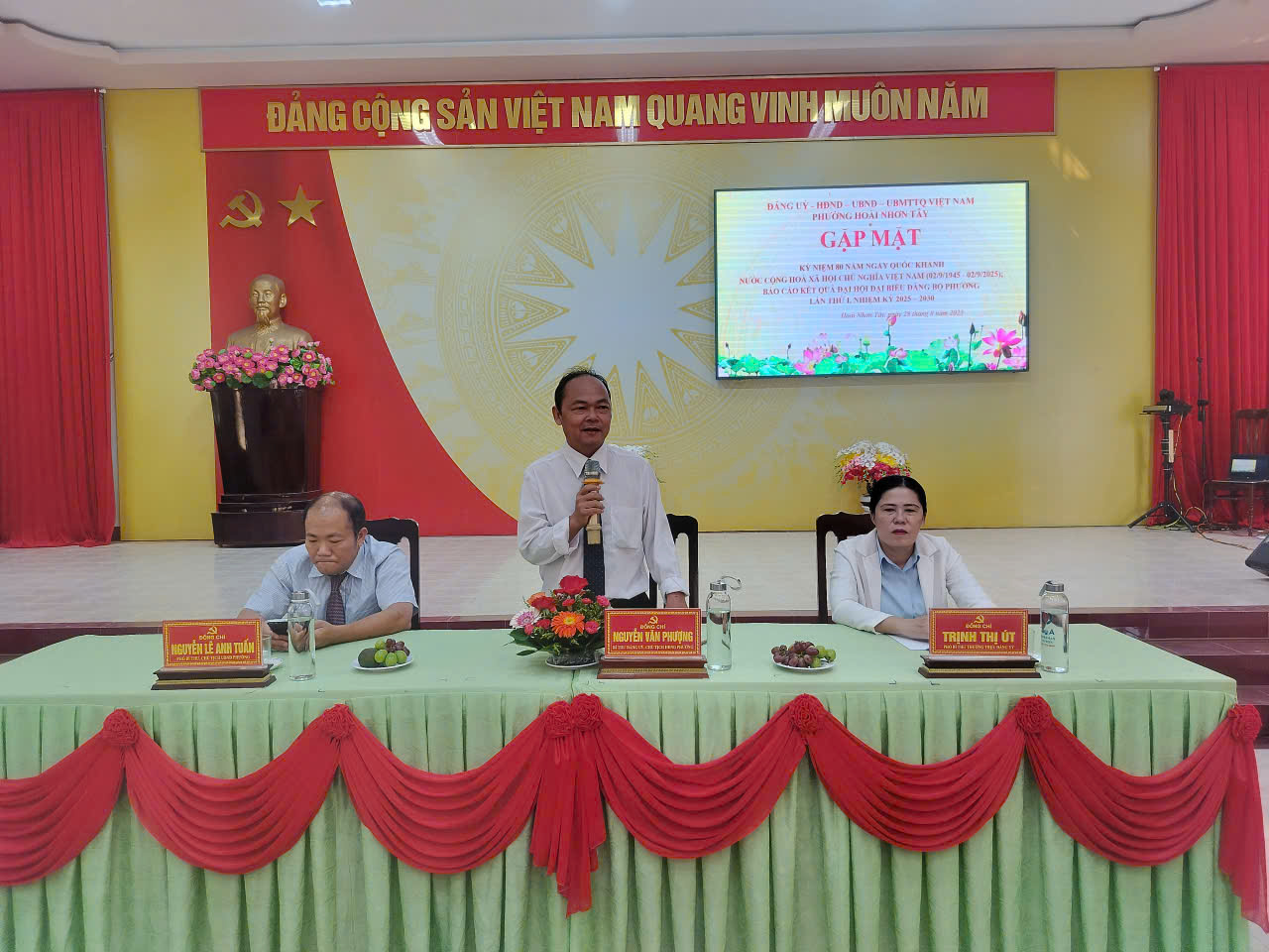 Tham dự buổi gặp mặt có đồng chí Nguyễn Văn Phượng bí thư Đảng ủy- chủ tịch HĐND phường, đồng chí Trịnh Thị Út phó bí thư thường trực Đảng ủy phường, đồng chí Nguyễn Lê Anh Tuấn phó bí thư, chủ tịch UBND phường cùng các đồng chí trong BTV, BCH đảng bộ phường. Đặc biệt về dự gặp mặt còn có các đồng chí nguyên lãnh đạo của thị xã Hoài Nhơn qua các thời kỳ. Đây là dịp để toàn thể cán bộ và nhân dân cùng nhau ôn lại trang sử vàng hào hùng của dân tộc, tri ân sâu sắc những cống hiến, hy sinh to lớn của các thế hệ cha ông đi trước; đồng thời, khẳng định quyết tâm tiếp tục phát huy truyền thống cách mạng, đoàn kết một lòng, vượt qua khó khăn, xây dựng quê hương Hoài Nhơn Tây ngày càng phát triển như trong nghị quyết Đại Hội Đại biểu Phường lần thứ nhất, Nhiệm kỳ 2025-2030 đã xác định.