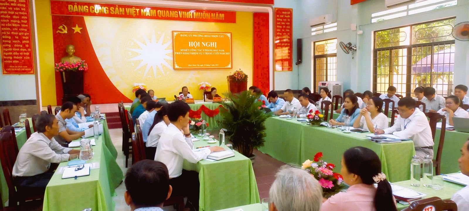 Sáng ngày 29/9/2025, Đảng uỷ phường Hoài Nhơn Tây tổ chức Hội nghị Sơ kết công tác 9 tháng đầu năm, triển khai nhiệm vụ 3 tháng cuối năm 2025. Tham dự Hội nghị có các đồng chí trong Thường trực Đảng uỷ, Thường trực Hội đồng nhân dân, Uỷ ban nhân dân, Uỷ ban Mặt trận Tổ quốc Việt Nam phường, các đồng chí trong Ban Thường vụ, Ban chấp hành Đảng bộ phường khoá I, nhiệm kỳ 2025-2030, các đồng chí đại biểu lãnh đạo các hội đoàn thể, đại biểu các phòng, ban chuyên môn, các cơ quan tham mưu giúp việc Đảng uỷ cùng các đồng chí Bí thư các chi, Đảng bộ trực thuộc Đảng uỷ và các Tổ trưởng tổ dân phố trên địa bàn phường.