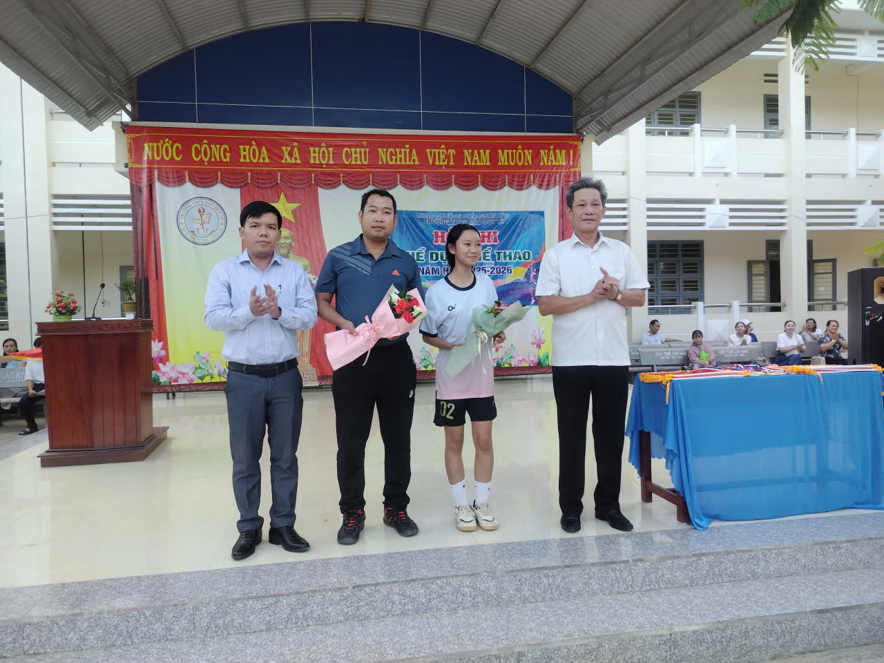 Phát biểu tại lễ khai mạc, thầy Phan Anh Phước hiệu trưởng nhà trường đã khẳng định: Việc tổ chức Hội thi Thể dục thể thao không chỉ góp phần duy trì phong trào thể dục thể thao trong trường học mà còn tạo điều kiện phát hiện, bồi dưỡng những tài năng trẻ, có năng khiếu nổi bật để tham gia các giải đấu cấp thị xã, cấp tỉnh trong thời gian tới. Đồng thời, thông qua hoạt động này, học sinh còn được rèn luyện kỹ năng làm việc nhóm, tinh thần thi đấu trung thực, cao thượng, góp phần xây dựng môi trường giáo dục lành mạnh, thân thiện và tích cực.