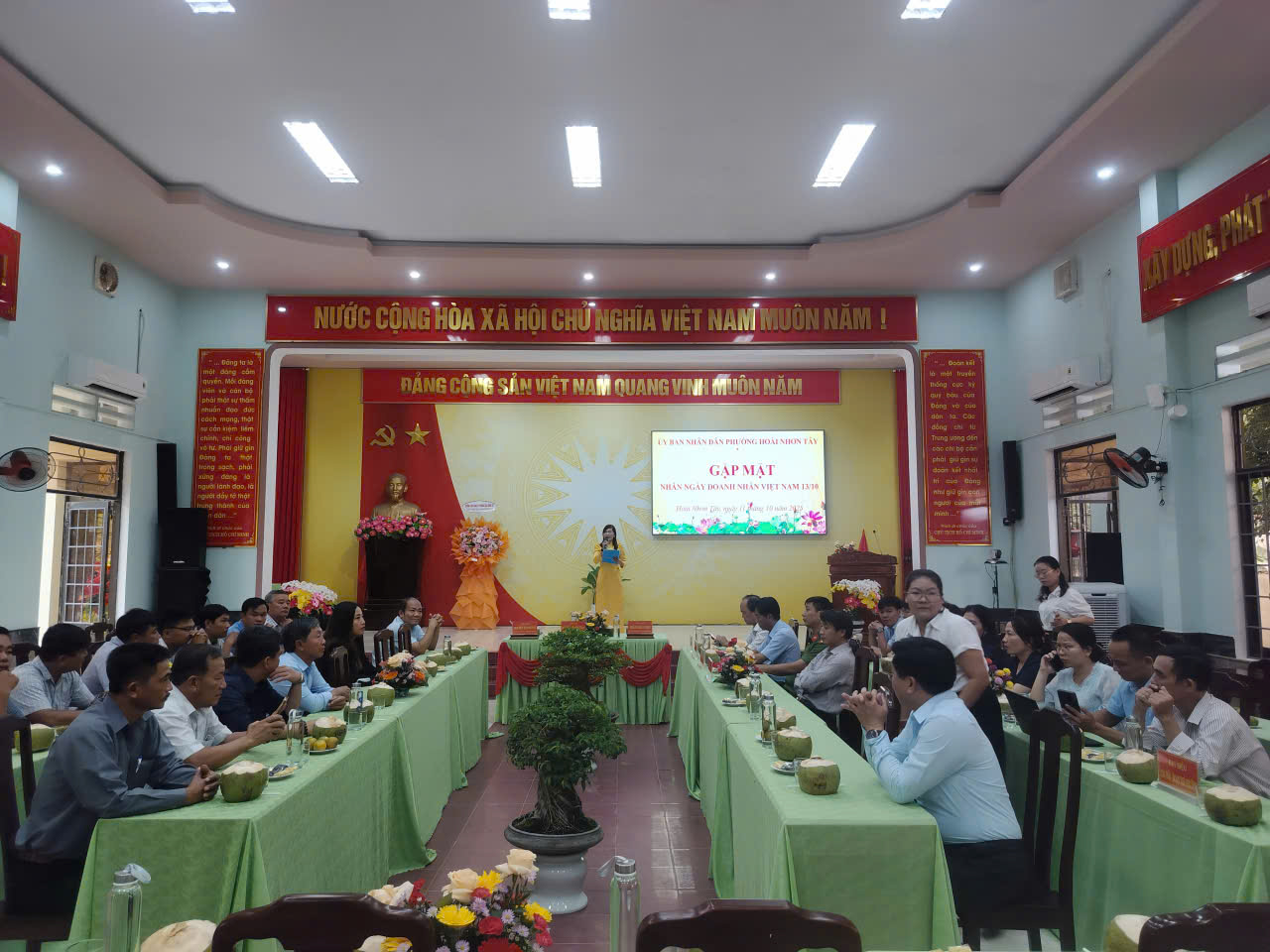 Tại buổi gặp mặt, lãnh đạo phường đã ôn lại truyền thống Ngày Doanh nhân Việt Nam, khẳng định vai trò quan trọng của đội ngũ doanh nhân, doanh nghiệp trong sự nghiệp phát triển kinh tế - xã hội. Các doanh nhân Hoài Nhơn Tây đã không ngừng nỗ lực vượt qua khó khăn, đổi mới tư duy, mạnh dạn đầu tư, mở rộng sản xuất, kinh doanh, tạo việc làm, nâng cao thu nhập cho người lao động, đóng góp tích cực vào ngân sách địa phương.